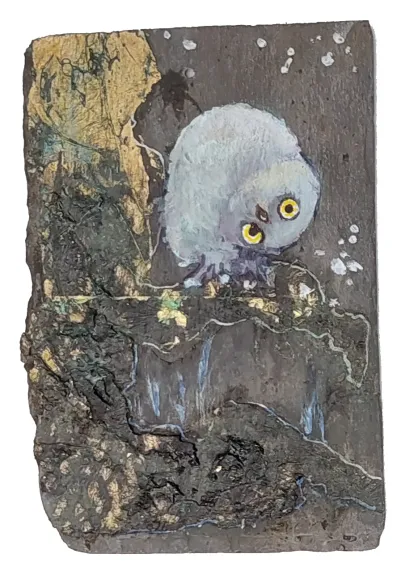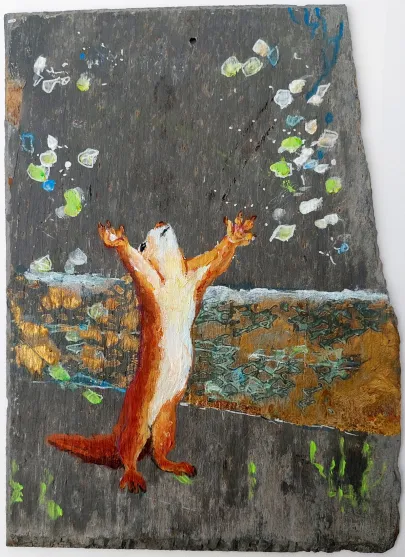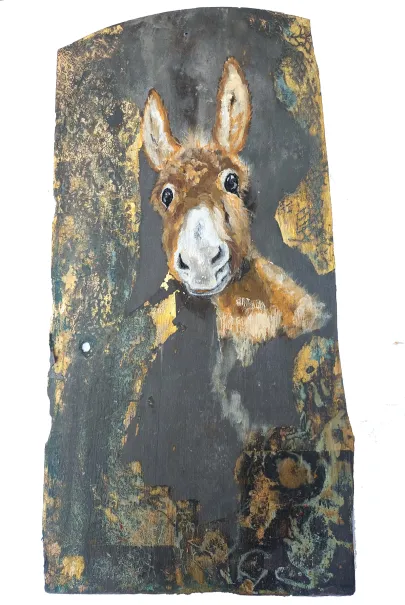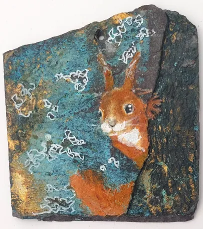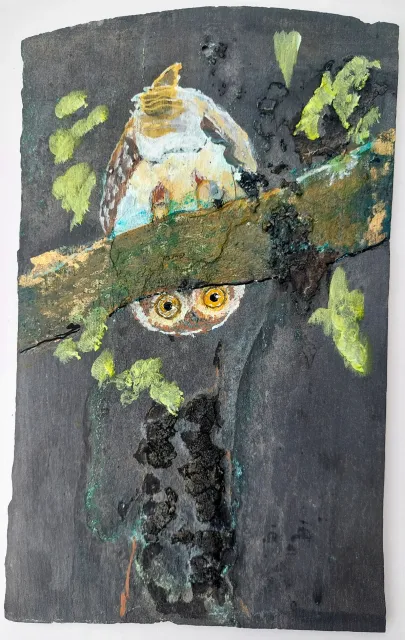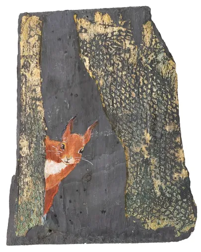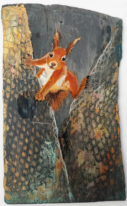 Her work as a social worker has balanced her work as an artist and enriched it with many stories from real life that could be translated into art. She has always been fascinated by both people and animals and has dived deep to learn more. She is known for her playful and humorous approach, capturing the moment with intensity and changing direction when required. Most recently, when she was given slate tiles from the roof of Galten Church from 1884, which - combined with a squirrel looking into her studio - suddenly brought new inspiration to her studio. Her art always reflects the fascination of the unpredictable, put into practice with good craftsmanship.