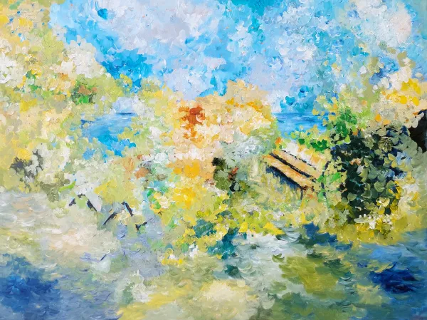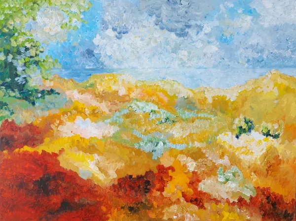 Fra serien "Sommerglæder" nr. 3 & 4. From the serie "Summer joy" no. 3 & 4. Akryl på canvas. 7000 d.kr. / €950akryl på skifer - acrylic at slate