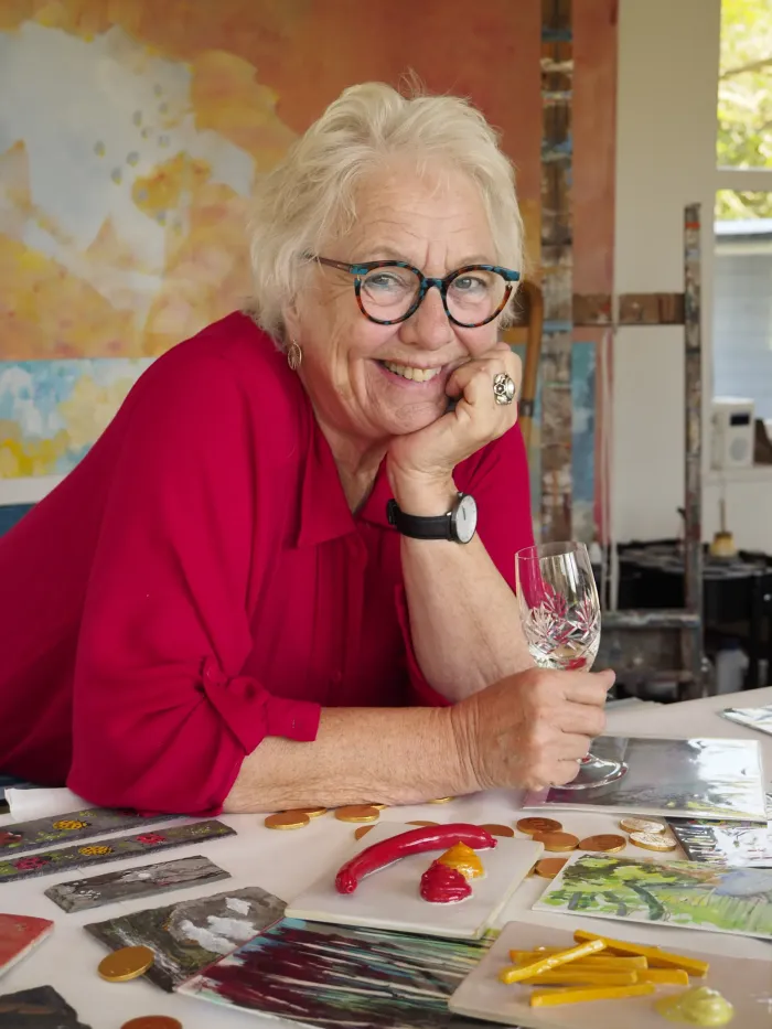 Hendes mangeårige arbejde som socialrådgiver har afbalanceret arbejdet som kunstner og beriget med mange fortællinger fra det virkelige liv, som kunne omsættes til kunst. Hun har altid været fascineret af både mennesker og dyr og har dykket dybt for at lære mere. Hun er kendt for sin legende og humoristiske tilgang, at fange øjeblikket med intensitet og skifte retning, når det kræves. Sidst da hun fik foræret skiferplader fra Galten Kirkes tag fra 1884, som - kombineret med et egern, der kiggede ind i hendes atelier, pludselig fik ny inspiration til at blæse igennem hendes atelier. Hendes kunst afspejler altid fascinationen af det uforudsigelige, sat i værk med godt håndværk.