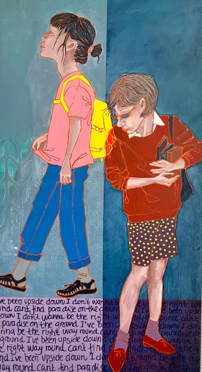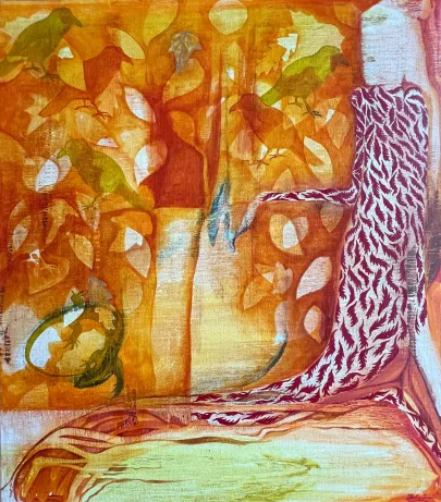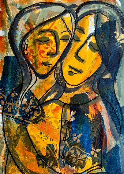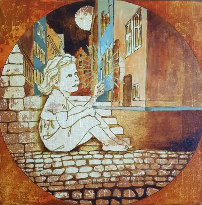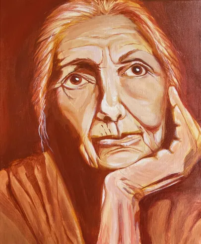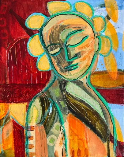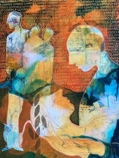 Vi får dog også glimt af mennesker, der mere end de fleste af os andre formår at hvile i sig selv udtrykkende visdom og balance. Ikke på en speciel ”hellig” måde, mere med en indre ro. Visdom som resultatet af et levet liv. Roen og hvilen afspejler sig i kompositionen og farveholdningen i disse malerier, hvor ikke mindst kærligheden spiller rollen som den store forløser.