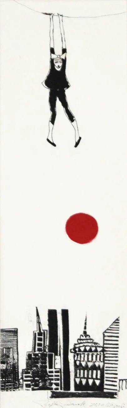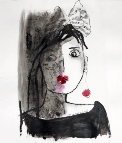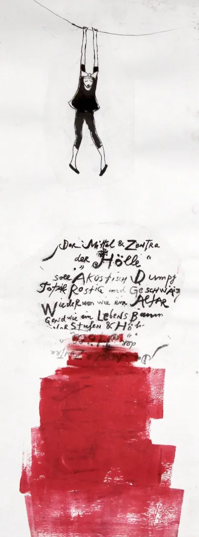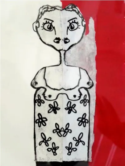 She works with mixed media, ie.e. several different techniques: graphics, drawing and collage. She finds the paper where ever in the world she is staying for shorter or longer periods.