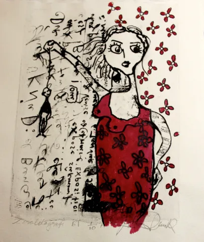 Jytte Dunck Pedersen was a dedicated artmoney artist, now in regi of Artgold. Her artworks is mostly collages and contains impressions from art exhibitions from travels - inspired by colorful posters from Berlin or old book bindings from Paris.