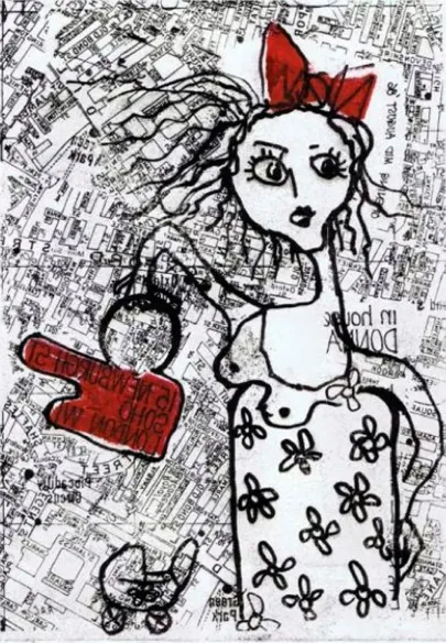 Hun arbejder i mixed media, dvs. i mange forskellige teknikker: grafik, tegning og collage. Hun finder papirstumperne hvor hun nu befinder sig rundt om i verden, hvor hun opholder sig for kortere eller længere perioder.