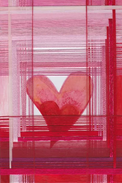 The last couple of years she uses winding in her artwork. She winds yarn around cardboard or photos.