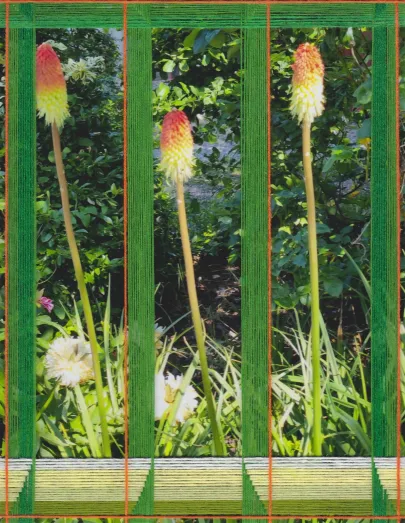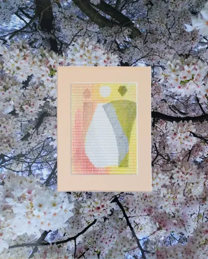 She moved to Denmark - holiday boyfriend and then Danish wife - and got a job as a nurse, but wove in her spare time. In the 90s, she began to combine paper and photography with cotton sewing thread in her weavings. By using different weaving techniques, a three-dimensional illusion is created.