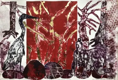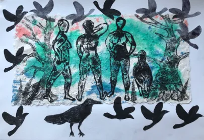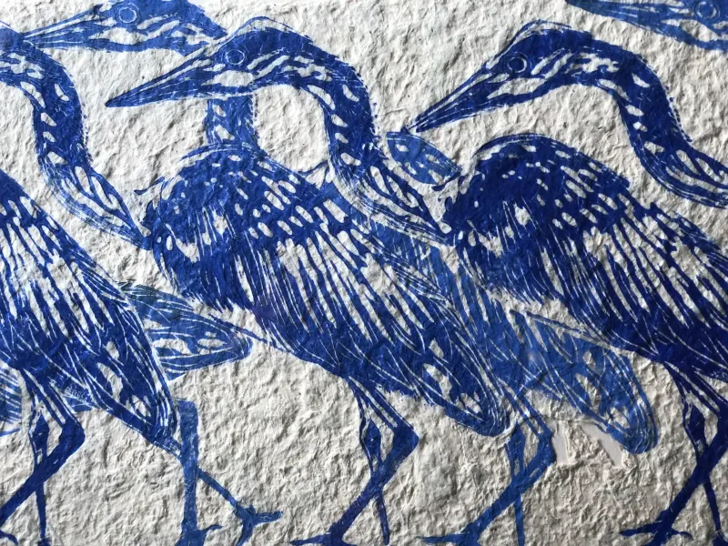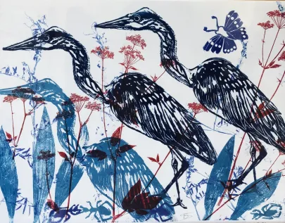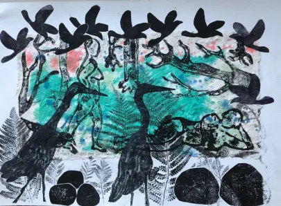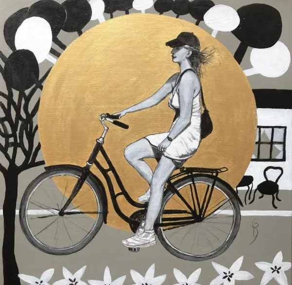 And art is changing. Right now she is fascinated by graphics, cardboard printing, lino printing. The motifs are, as always, people, animals, nature and bicycles.