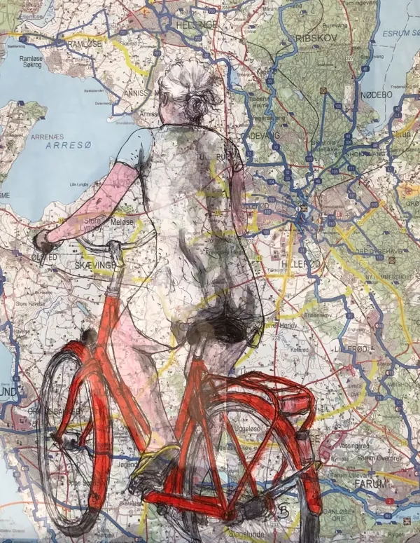 Og kunsten skifter. Lige nu er hun bidt af grafik, paptryk, linoleumstryk. Motiverne er som altid mennesker, dyr, natur og cykler.
